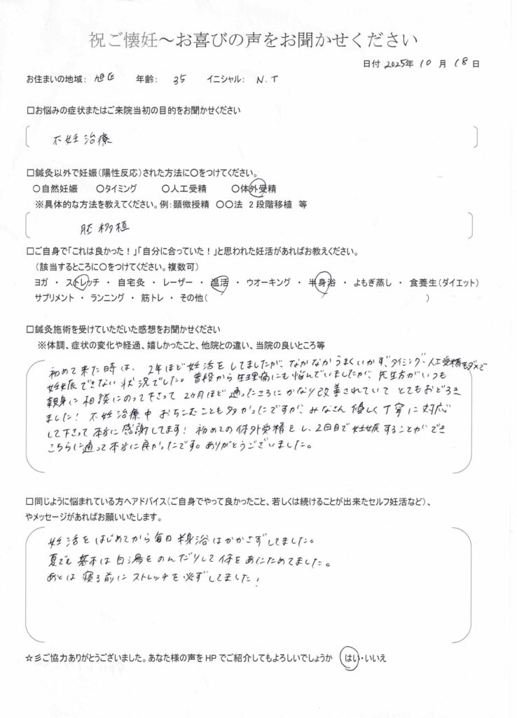 Tさん妊娠お喜びの声
