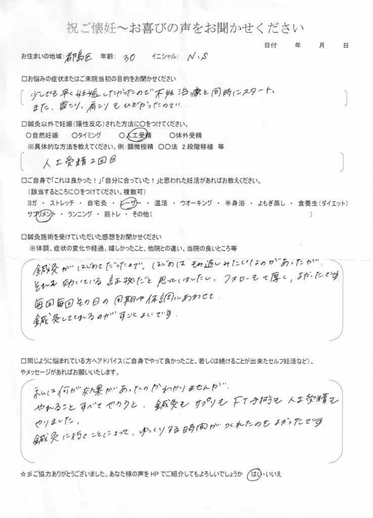 都島区からお越しのNさん(30歳)が妊娠されました。