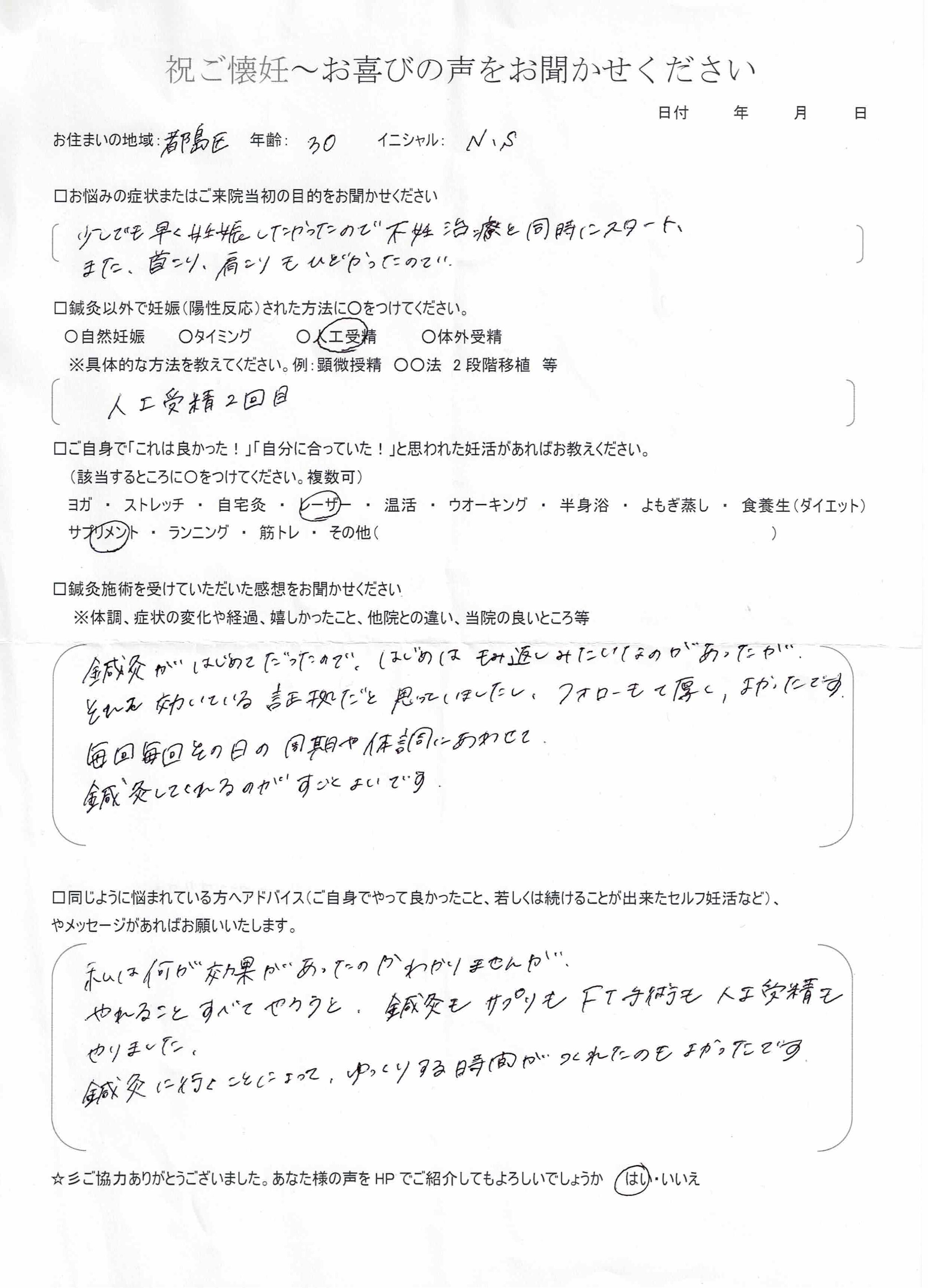 Nさん妊娠お喜びの声